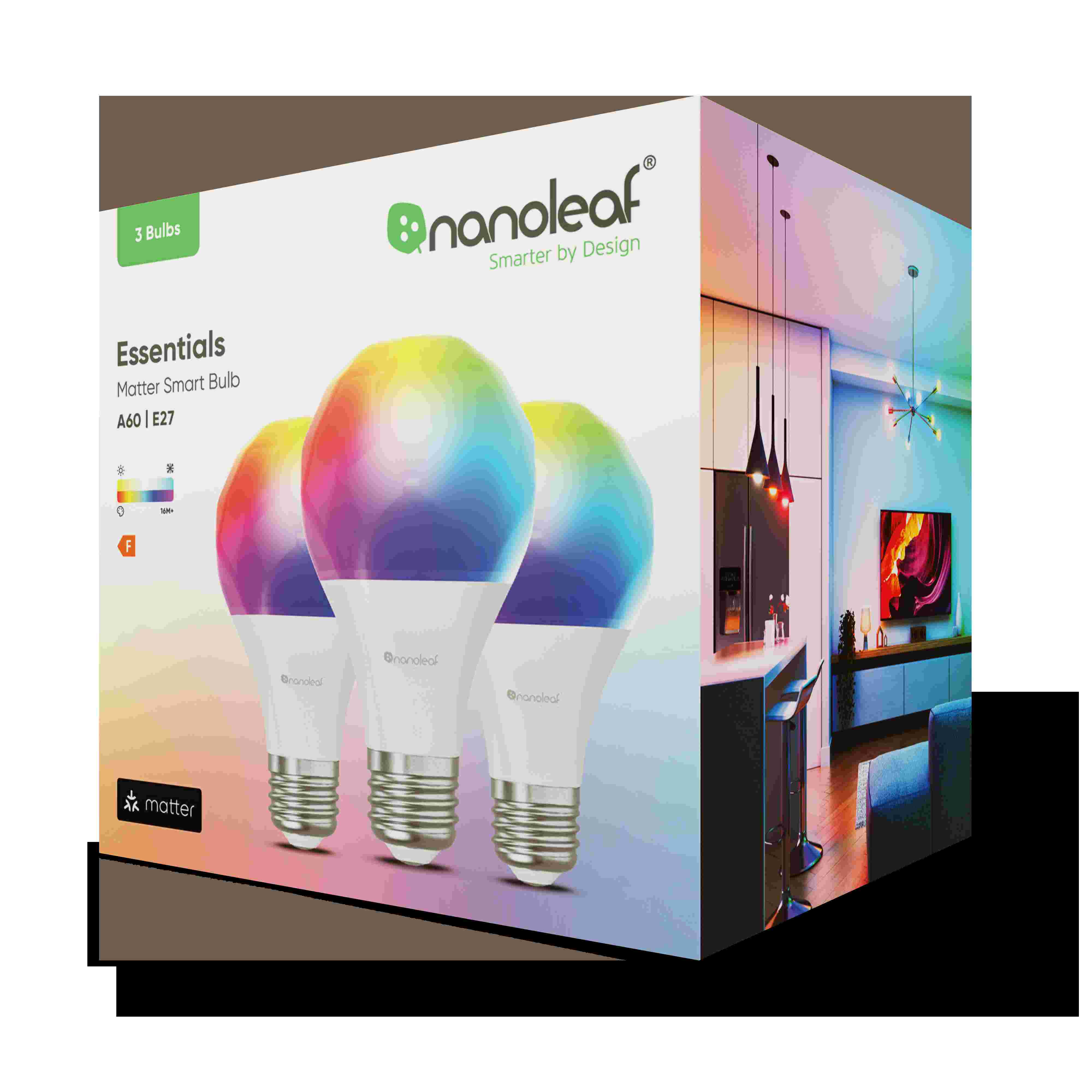 • Lieferumfang: 1/3 Nanoleaf Smarte Matter LED-Lampe (E27), 1 Bedienungsanleitung