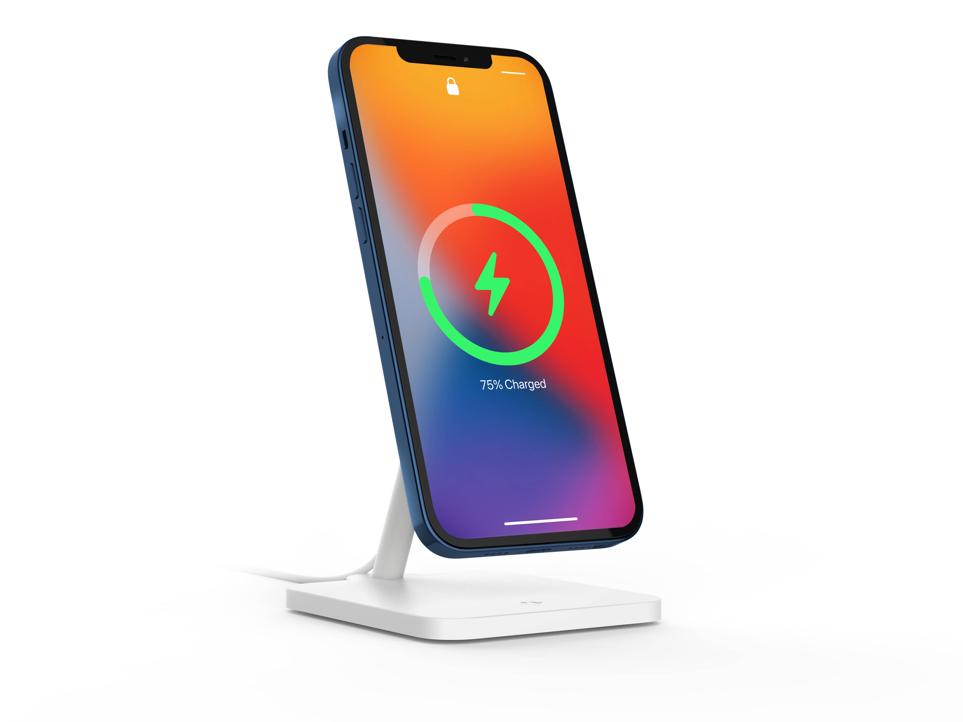Der Twelve South Forté für alle iPhones mit MagSafe ist ein moderner kabelloser Ladeständer, der für das iPhone entwickelt wurde. Stecke das MagSafe Ladekabel (separat erhältlich) in den Forté Ständer ein und ab dem iPhone 12 wird kabellos geladen. Die Forte + MagSafe Kombination liefert 15 Watt Ladeleistung - doppelt soviel wie die meisten nicht-Apple-zertifizierten kabelosen Ladelösungen.