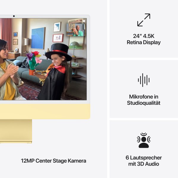 - Brillantes 24" 4.5K Retina Display mit P3 Farbraum und über einer Milliarde Farben