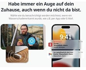 Die Installation ist denkbar einfach: Das Gerät wird eingesteckt und an einem potenziellen Leckort platziert. Dank der Verbindung über WLAN und Bluetooth ist keine zusätzliche Hardware erforderlich, und die Steuerung erfolgt bequem über die SwitchBot App. Bei Erkennung von Wasser sendet der Detektor sofort eine Benachrichtigung auf Ihr Smartphone, sodass Sie schnell reagieren können und potenzielle Schäden minimiert werden.