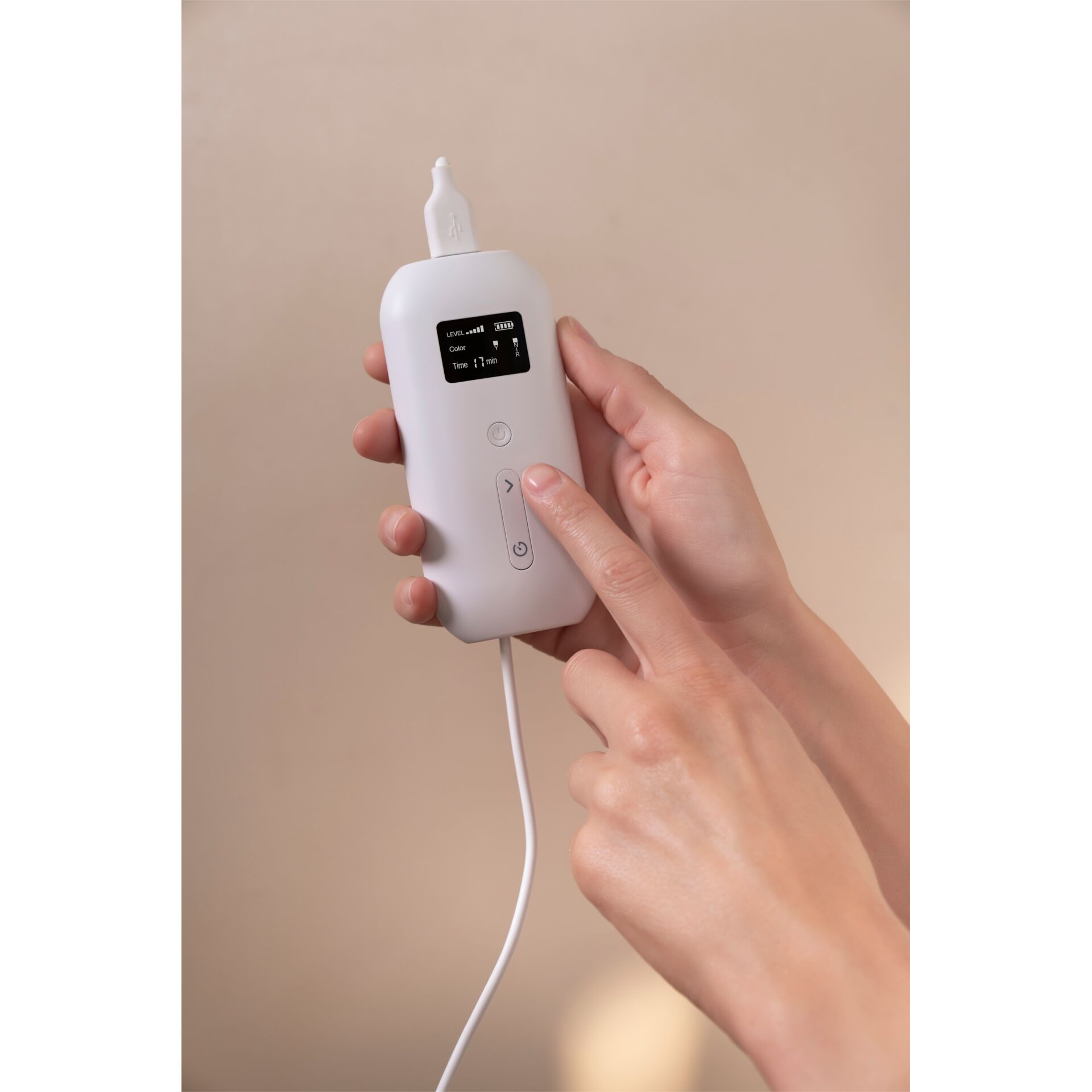 Die Behandlungsdauer ist individuell von 1 bis 30 Minuten einstellbar. Für ein optimales Pflegeerlebnis werden 5 bis 10 Minuten pro Anwendung empfohlen.