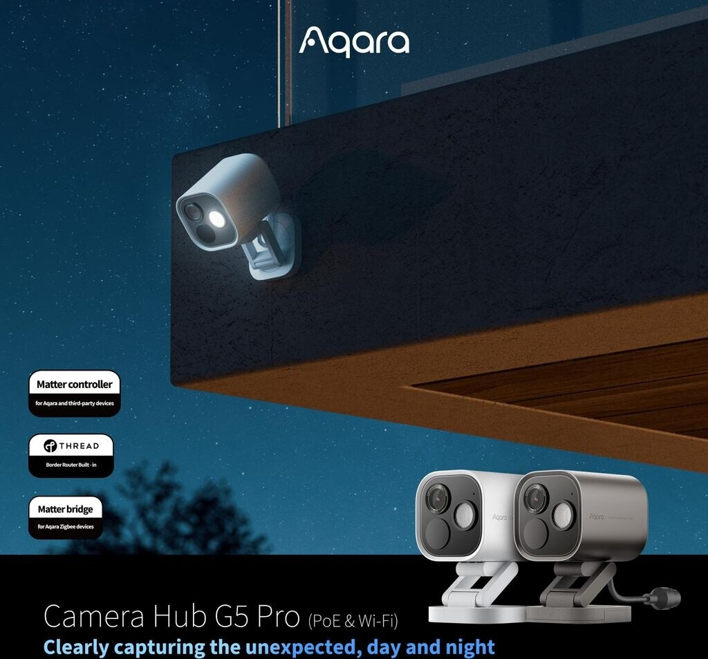Mit dem Aqara Camera Hub G5 Pro vereinst Du zwei Funktionen in einem Gerät. Sie dient als smarte Sicherheitskamera und Hub für Deine Aqara-Geräte. Mit dem Hub als Matter Controller, -Bridge, oder Thread Border Router stellst Du eine direkte Verbindung mit weiteren Aqara-Geräten sowie Geräten anderer Hersteller her. Ohne eine zusätzliche Zentrale fügst Du den Hub G5 Pro in Dein Smart-Home-System ein.