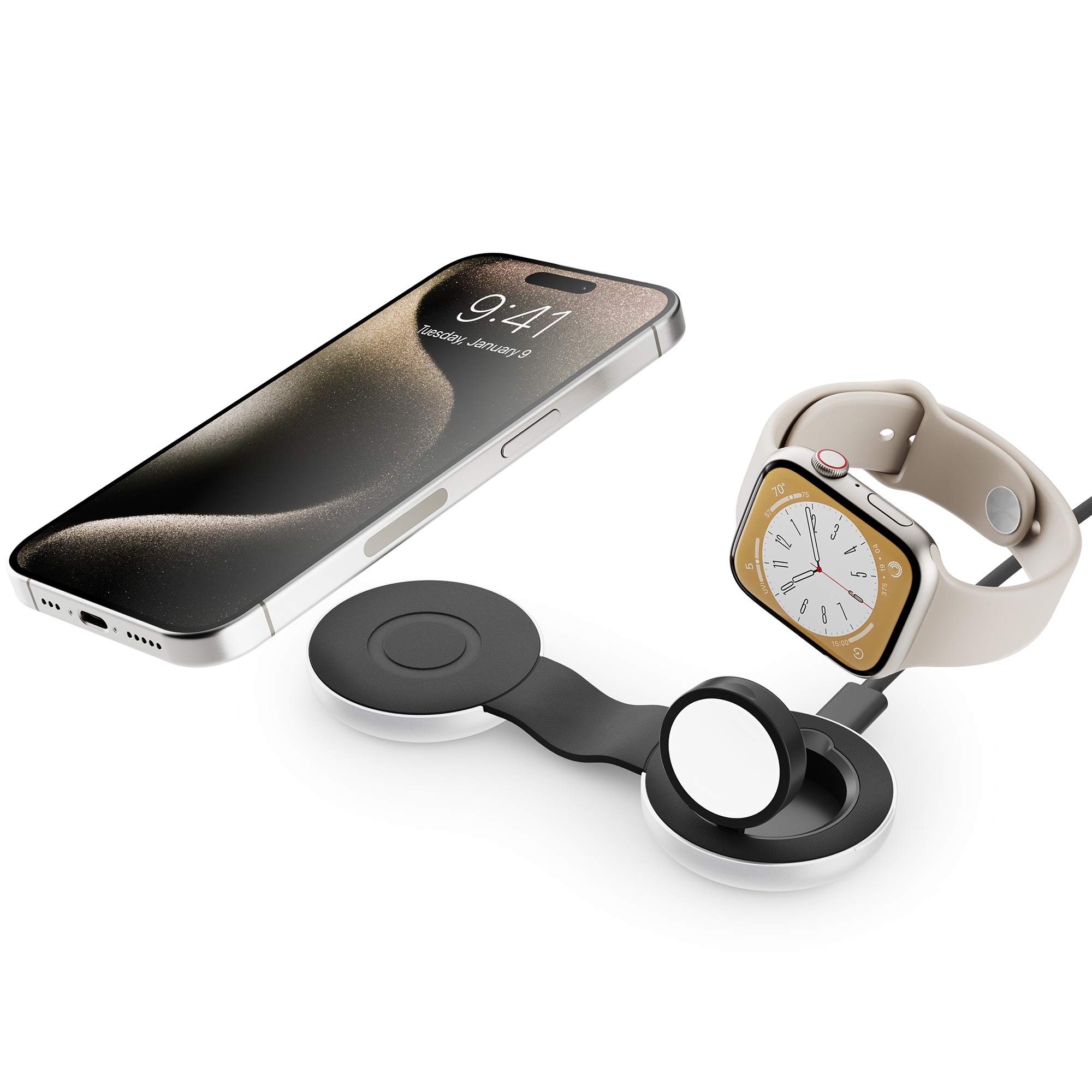 Klein und kraftvoll – lade dein iPhone und deine Apple Watch gleichzeitig mit dem weltweit kleinsten 2-in-1 USB-C MagSafe-Ladegerät.