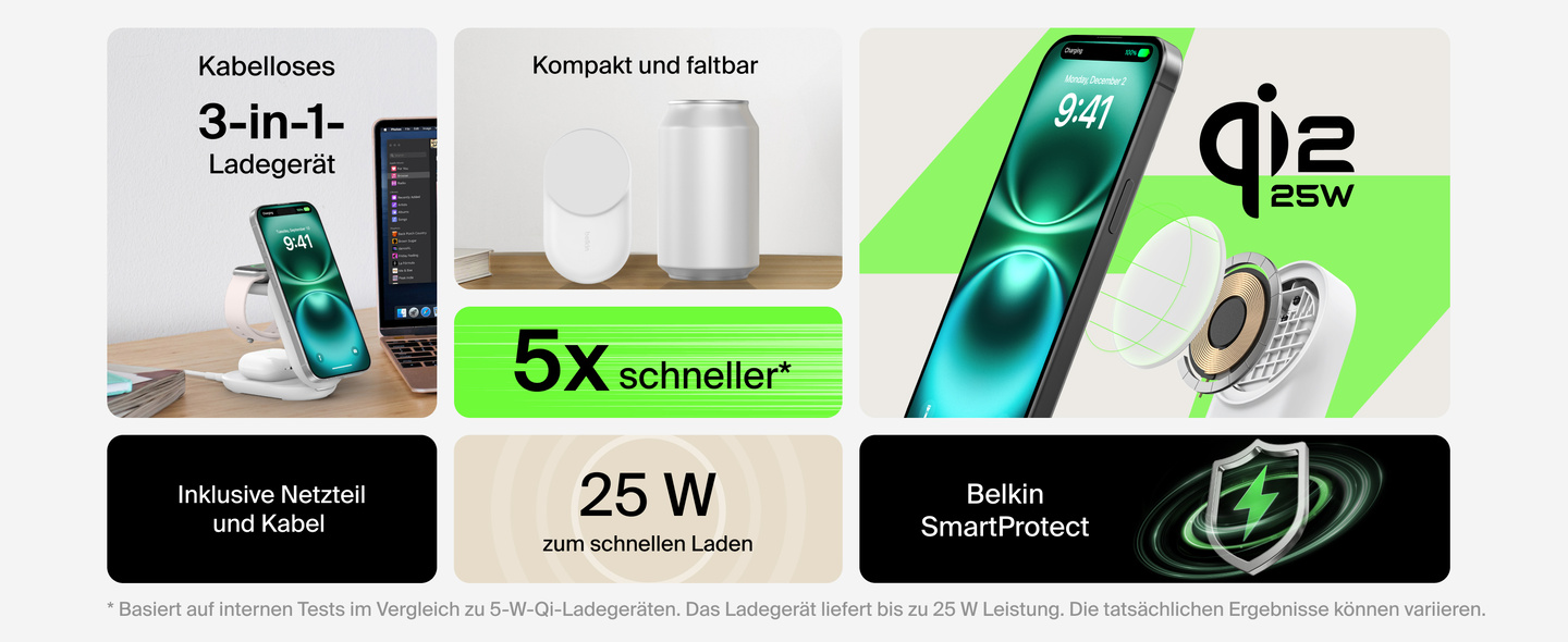 Belkin Wireless Charger mit QI2 (3-in-1), Weiß, 25W
