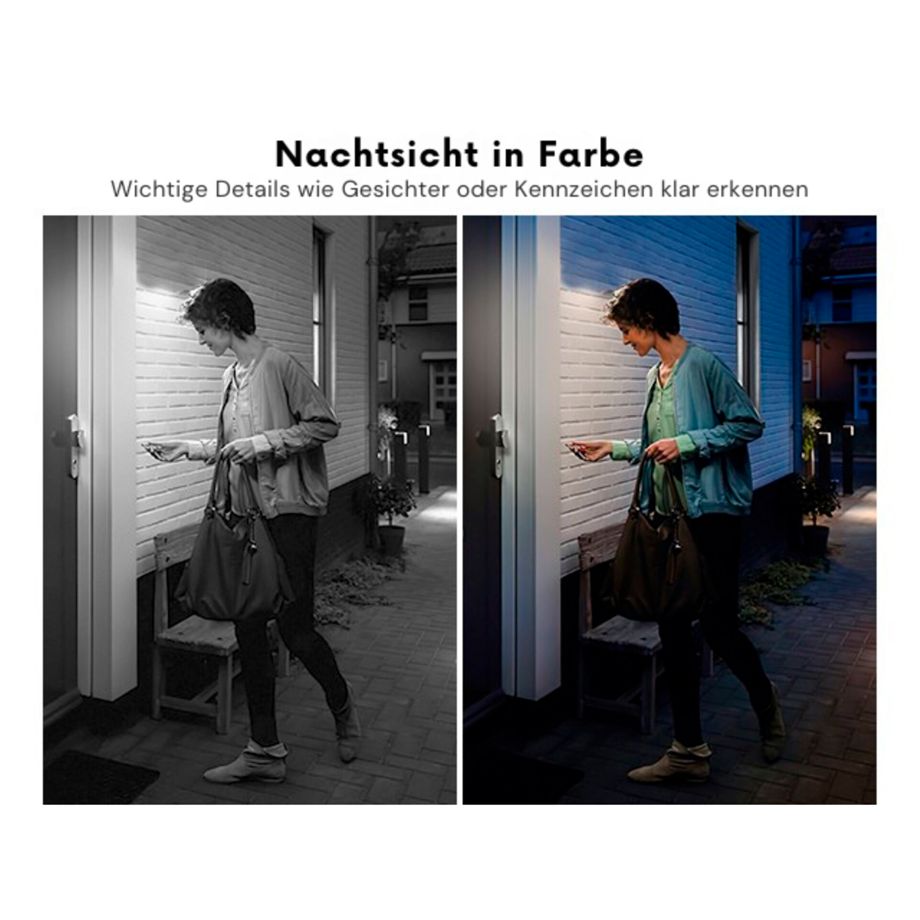 Unterstützt wird die Abschreckung durch einen integrierten LED-Spot und ein akustisches Alarmsignal. Zur schnellen Einschätzung erkannter Ereignisse sendet die Kamera bei Aktivierung eine Echtzeit-Benachrichtigung mit Snapshot-Vorschau direkt auf das Smartphone. Über die Zwei-Wege-Audiofunktion kann zusätzlich in Echtzeit kommuniziert werden, etwa zur Ansprache von Besuchern oder zur Situationsklärung.