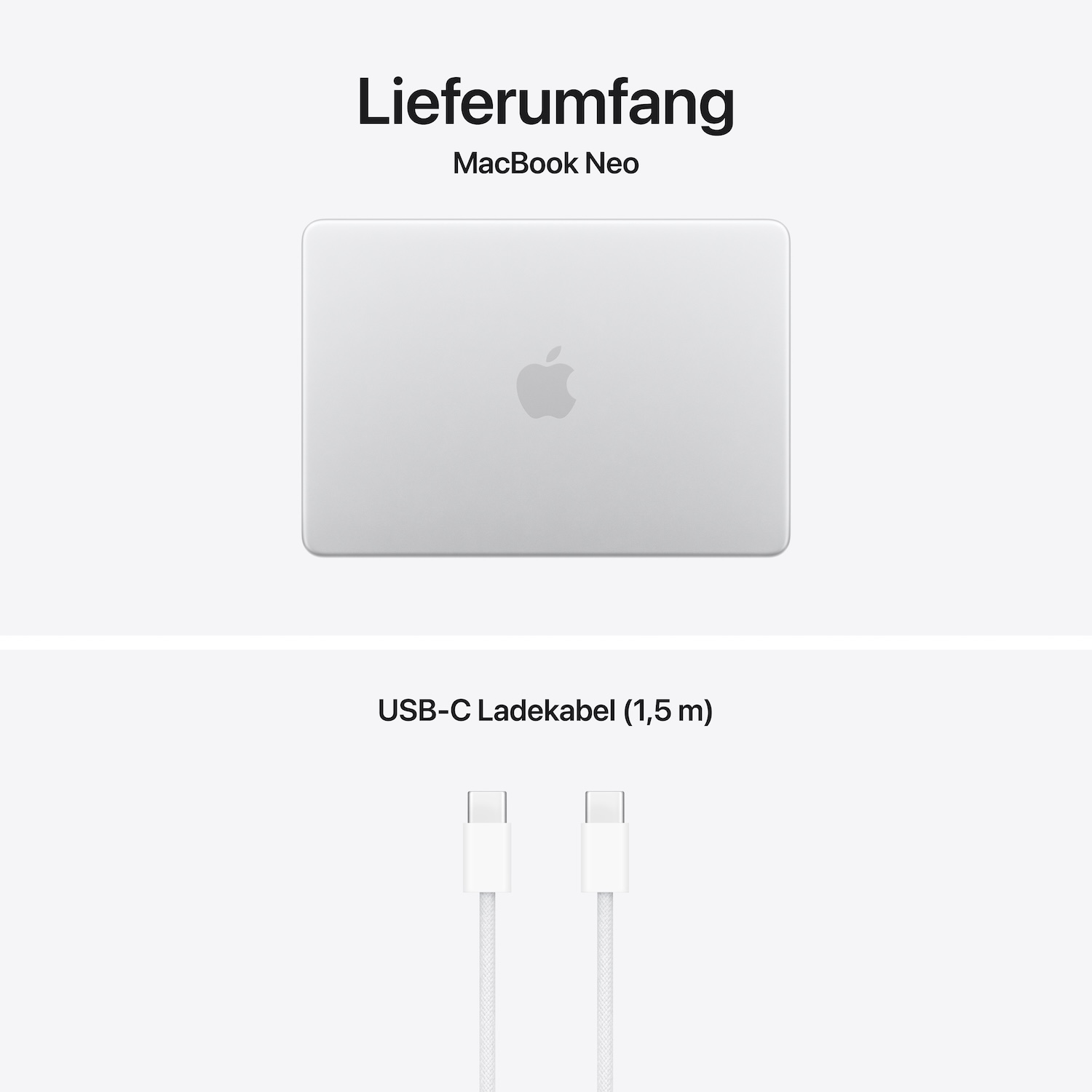 MacBook Neo 13" A18 Pro, Silber, A18 Pro Chip mit 6-Core CPU, 5-Core GPU, 16-Core Neural Engine, 8GB, 512GB, Touch ID, Deutsch, Kein Netzteil