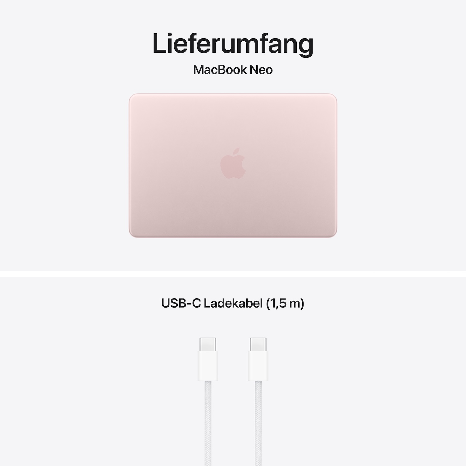 MacBook Neo 13" A18 Pro, Rosa, A18 Pro Chip mit 6-Core CPU, 5-Core GPU, 16-Core Neural Engine, 8GB, 512GB, Touch ID, Englisch International, Kein Netzteil