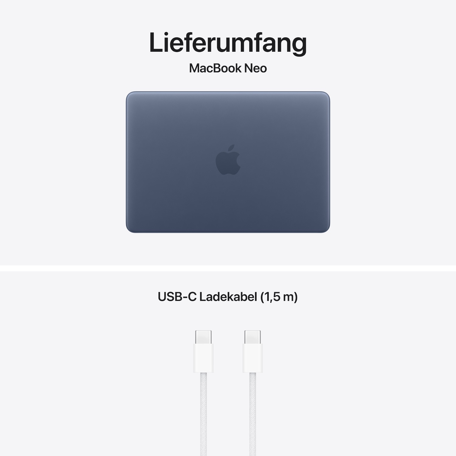 MacBook Neo 13" A18 Pro, Indigo, A18 Pro Chip mit 6-Core CPU, 5-Core GPU, 16-Core Neural Engine, 8GB, 512GB, Touch ID, Englisch International, Kein Netzteil